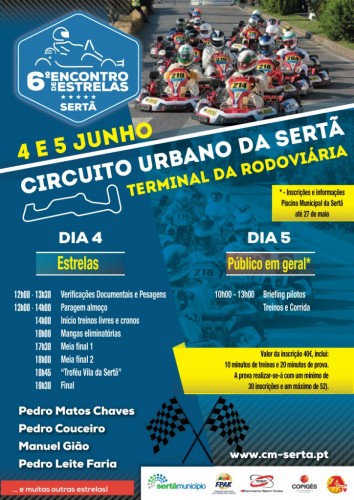 As provas serão realizadas em circuito urbano, junto ao Terminal da Rodoviária, aprovado pela FPAK . O 6.º Encontro de Estrelas tem confirmadas as presenças de cerca de 50 nomes sonantes do automobilismo nacional tais como Pedro Couceiro, Pedro Matos Chaves, José Viana (vencedor do 5.º Encontro de Estrelas), António Pedro Gião e do sertaginense Manuel Gião, entre muitos outros.